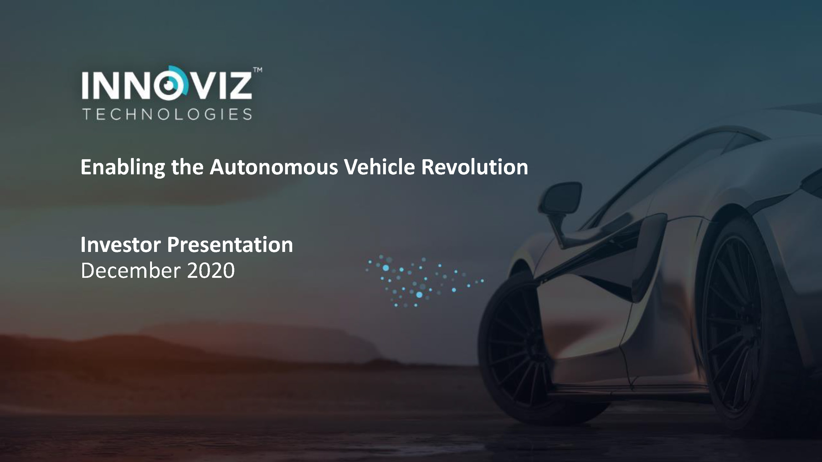 1 1 © Innoviz Technologies Ltd. 2020 All Rights Reserved – Proprietary & Confidential. No part of this document may be reproduced or disclosed in any manner. Enabling the Autonomous Vehicle Revolution Investor Presentation December 2020